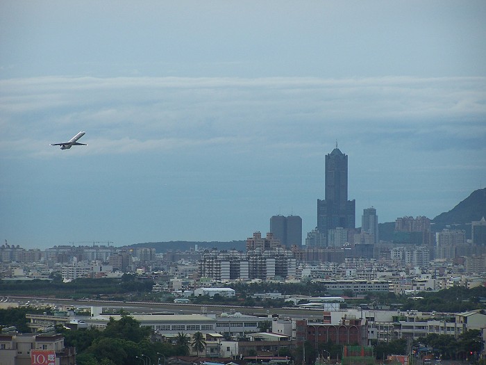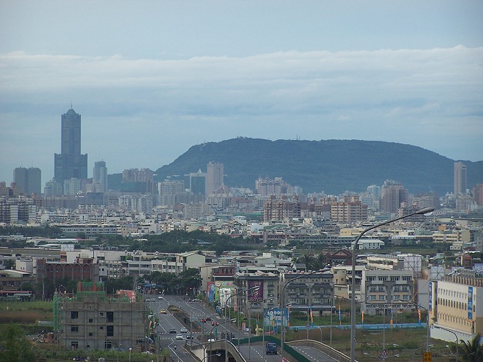 隨著夕陽消失在雲層下,高雄的能見度提升不少